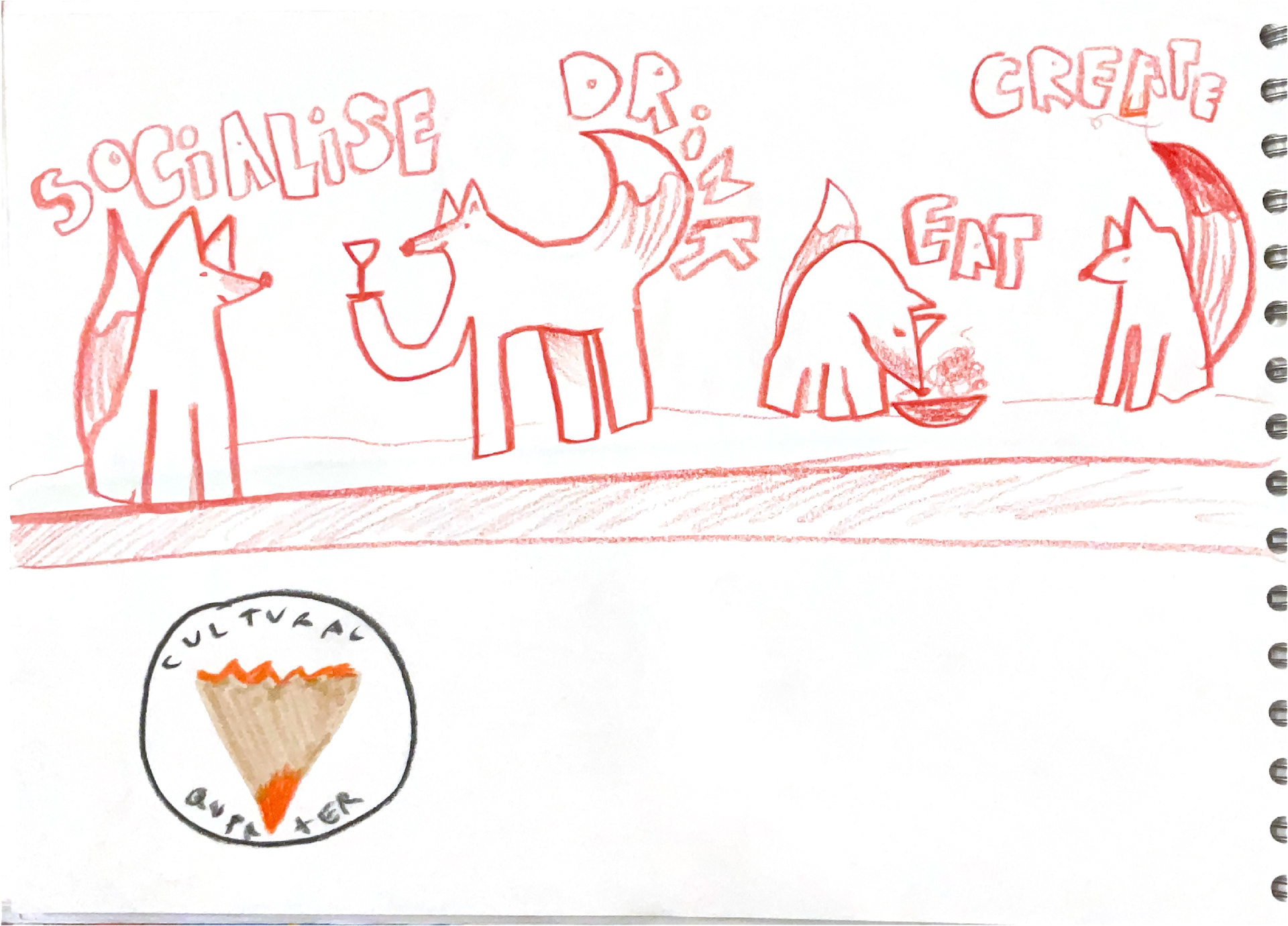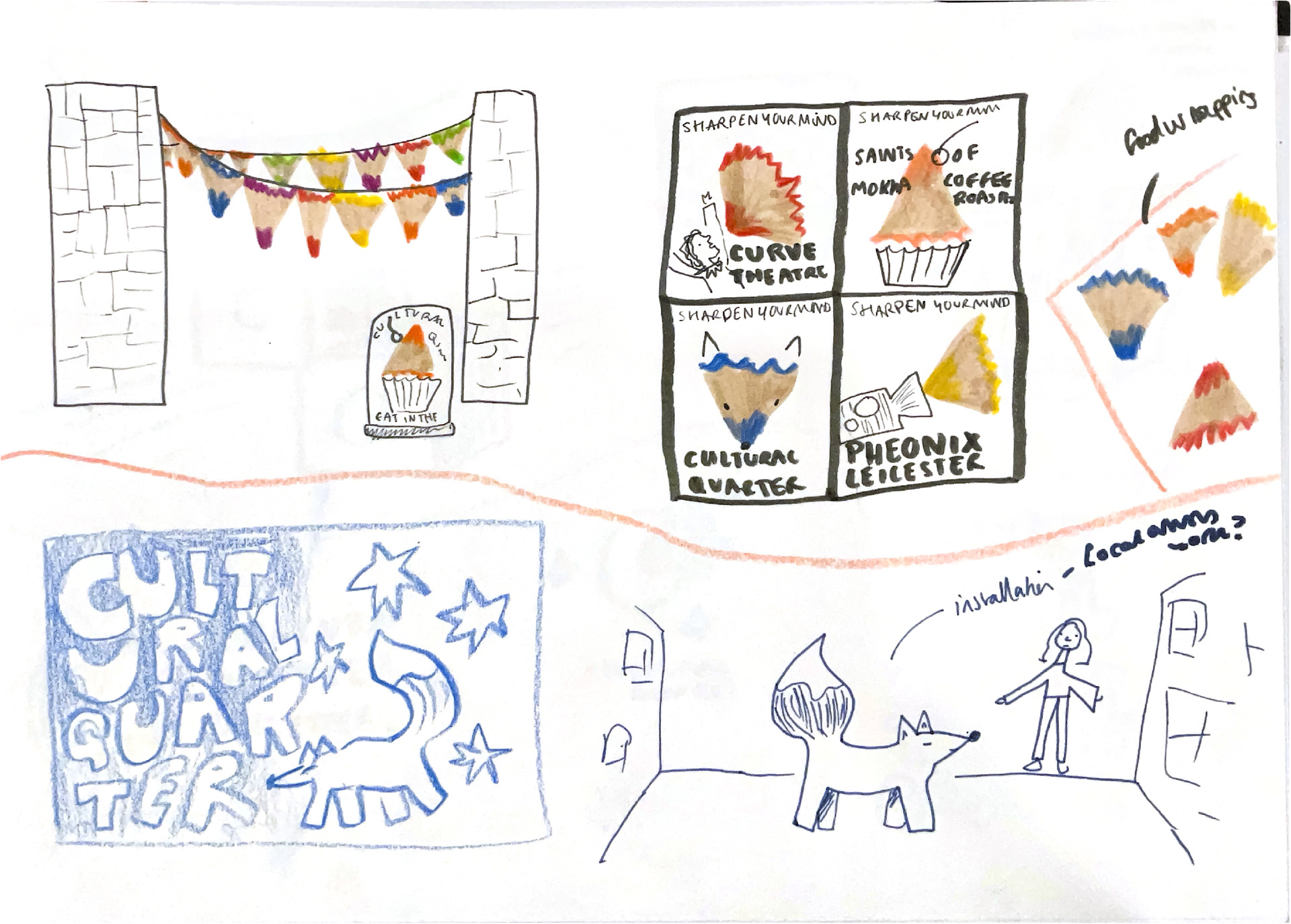 The use of a fox (vocal at night time and the animal of Leicester), and a creative tool helps to establish the Quarter as a key part of the city, that offers peaceful creativity and exciting nightlife.