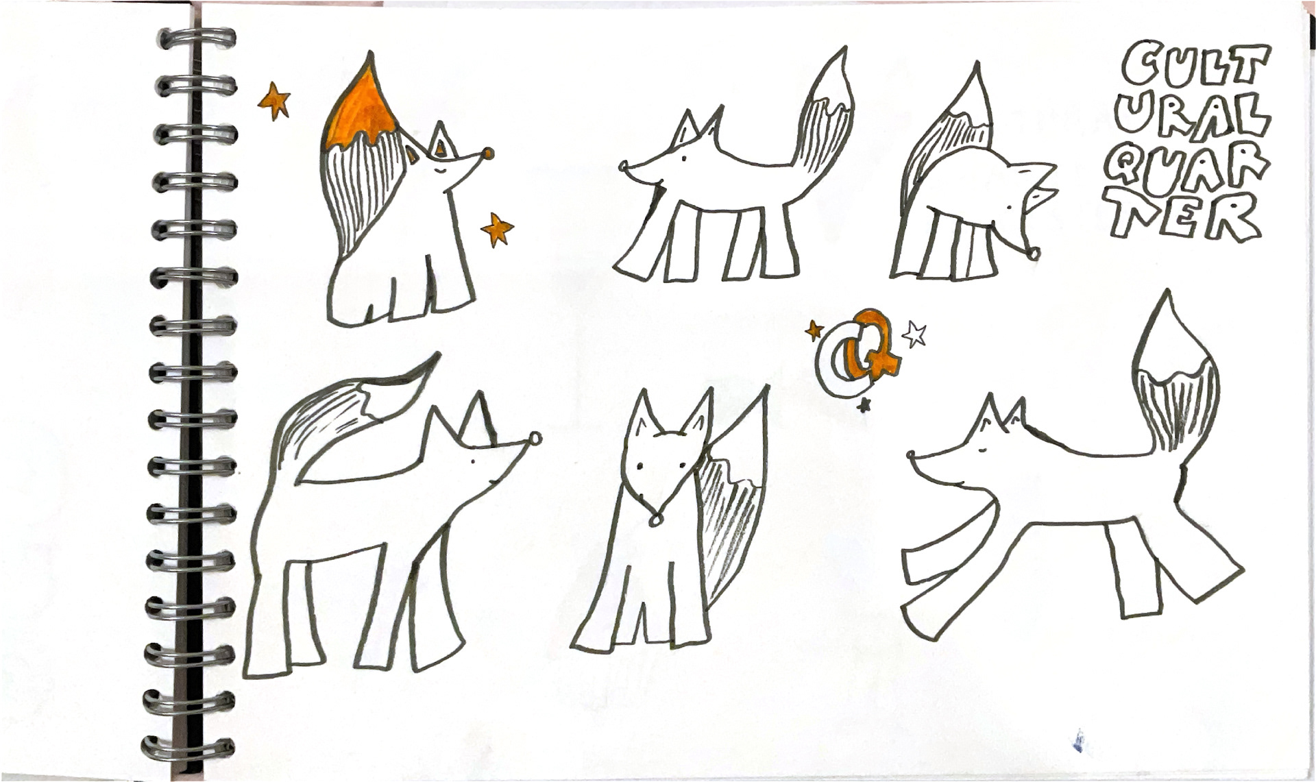After visiting the area, I noticed that despite the clear sense of community, there were not many signposts to distinguish the neighbourhood from other sectors of the city. To solve this, I created an interchangeable fox mascot, with a paintbrush tail (named ‘Lester’).