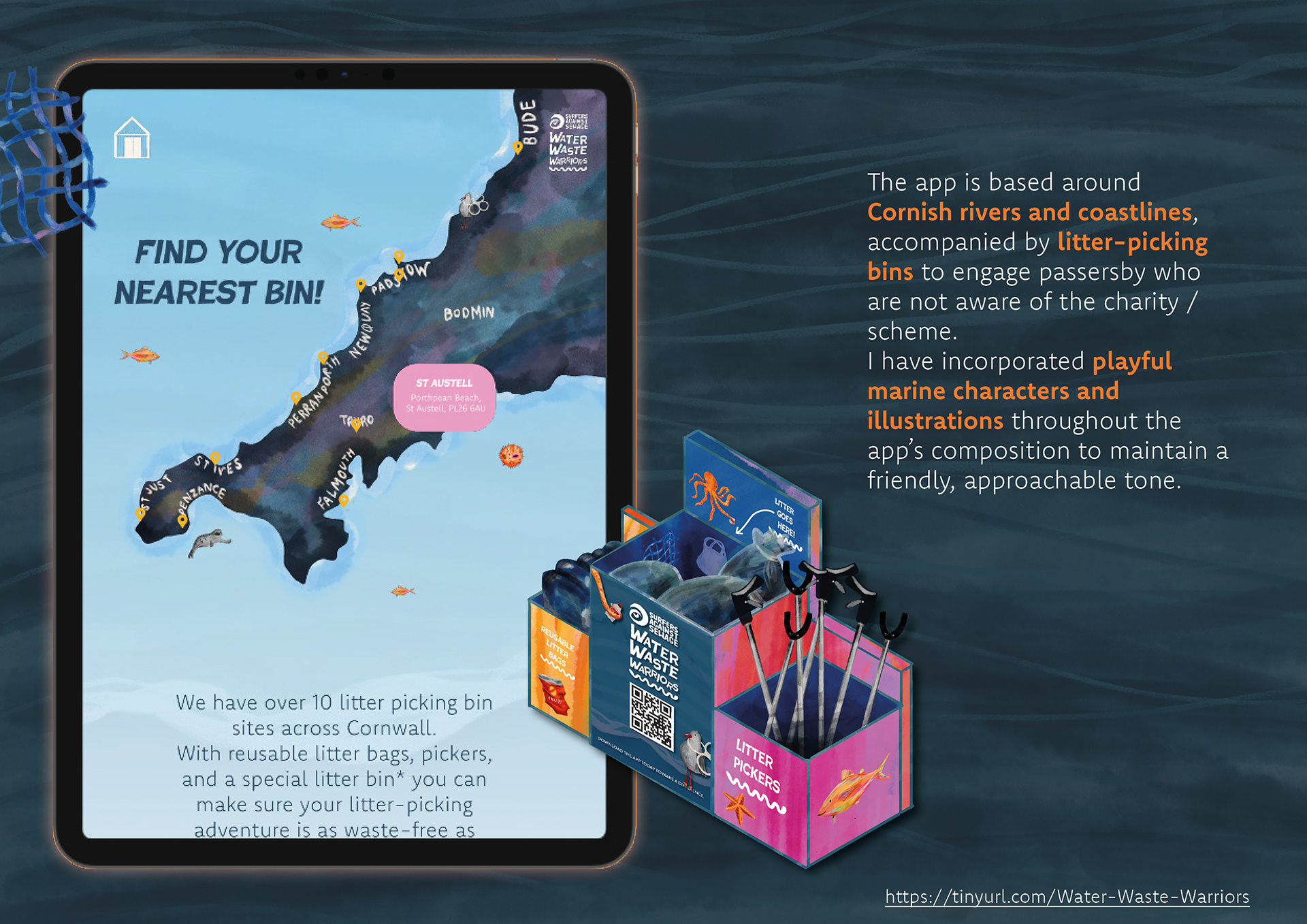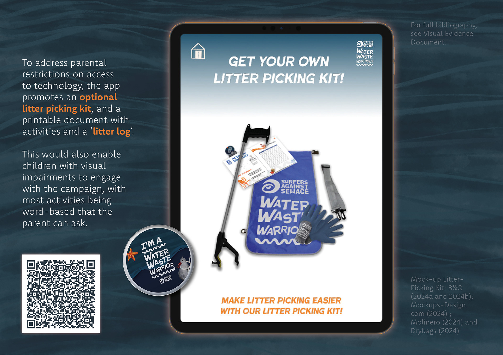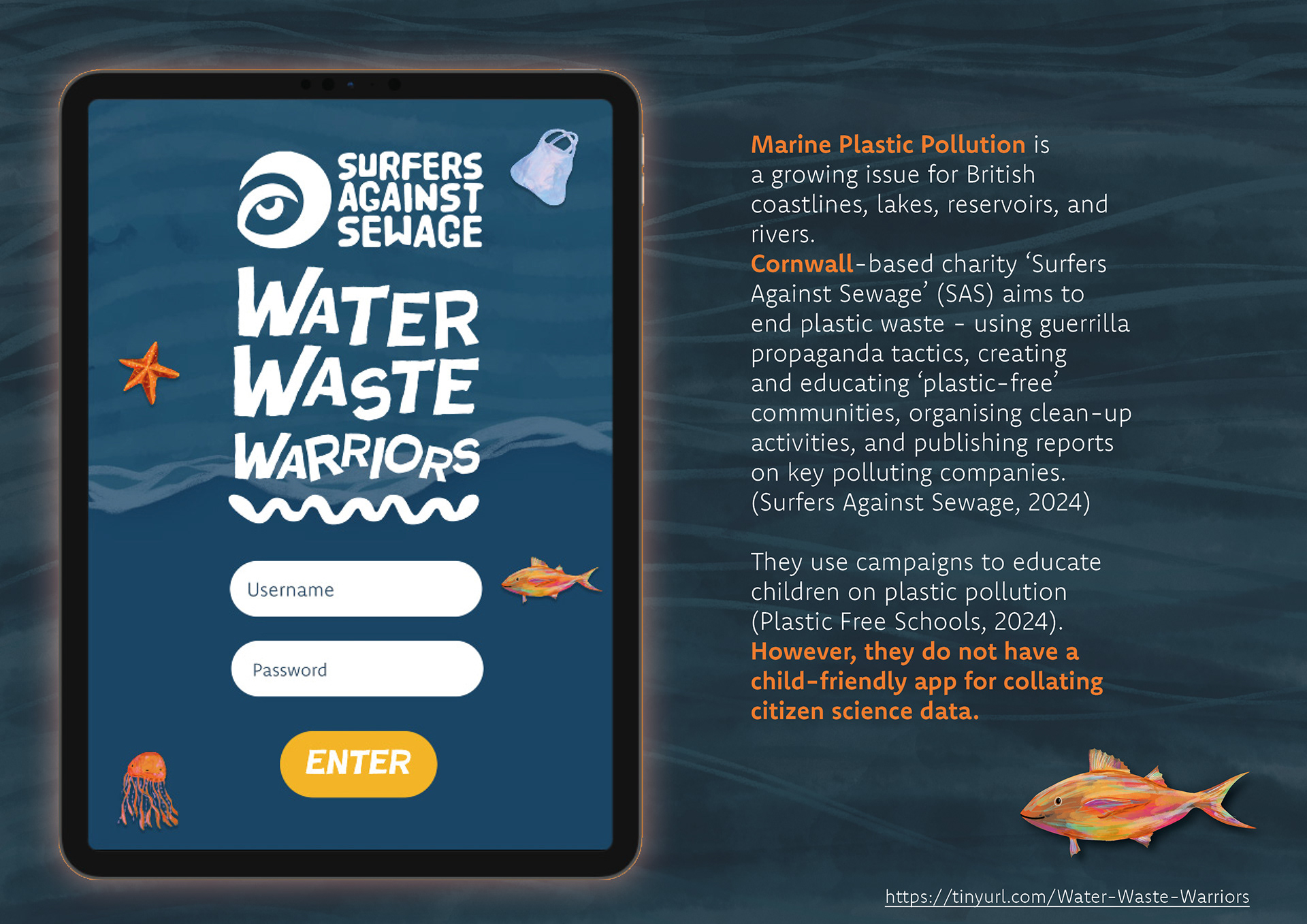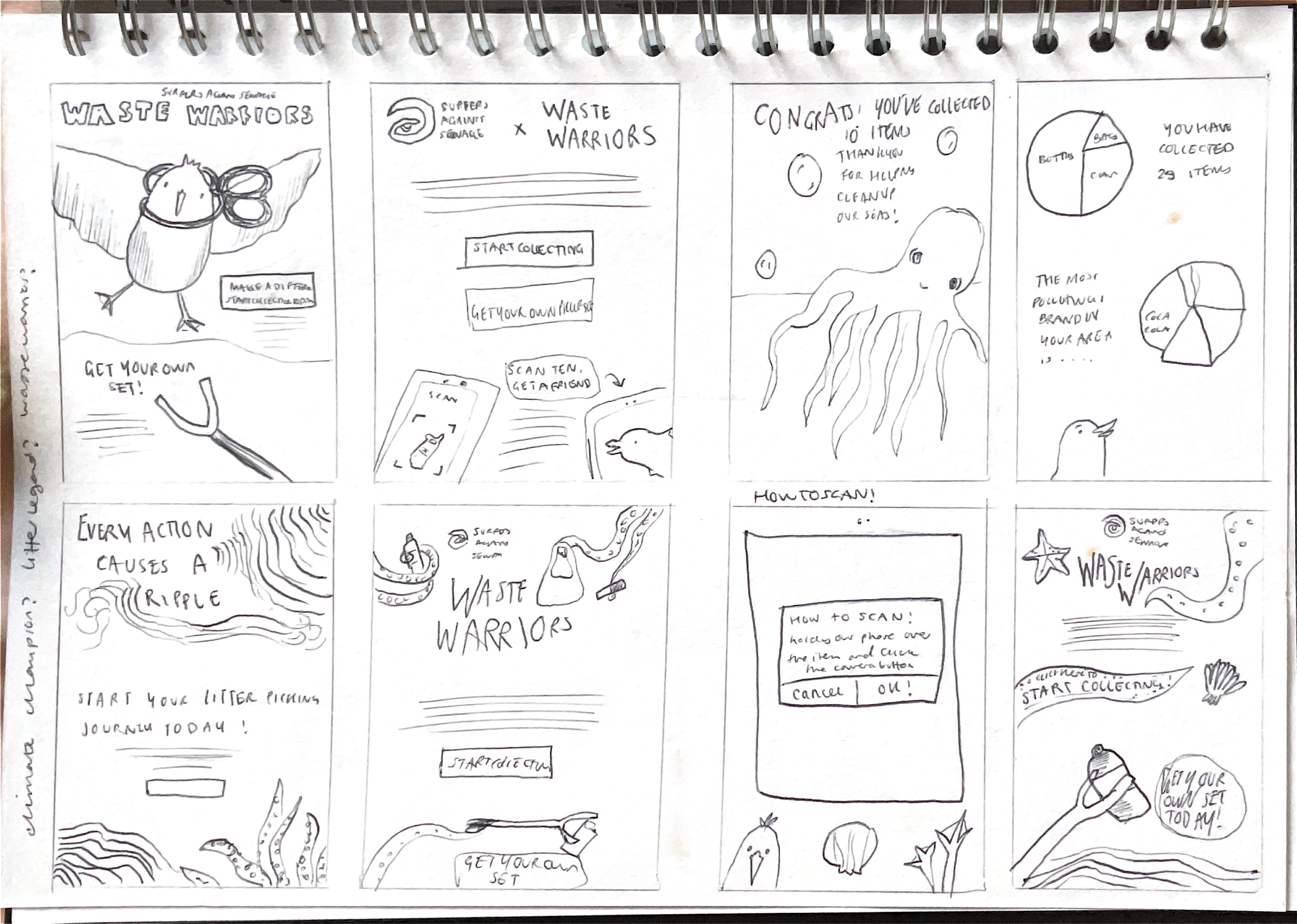 I designed an interactive children's citizen-science waste-collection app for Surfers Against Sewage, using Figma.
